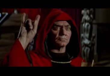Ernest Borgnine, dans le film "The Devil's Rain" (1975) où il incarne un prêtre de Satan. Les rites et incantations sataniques sont le thème principal de ce film qui ressemble plus a une propagande pour le satanisme qu'à un vrai film d'horreur de série B. Anton Lavey, fondateur de l'église de Satan était le conseiller technique de cette production. Pas de place au hasard...